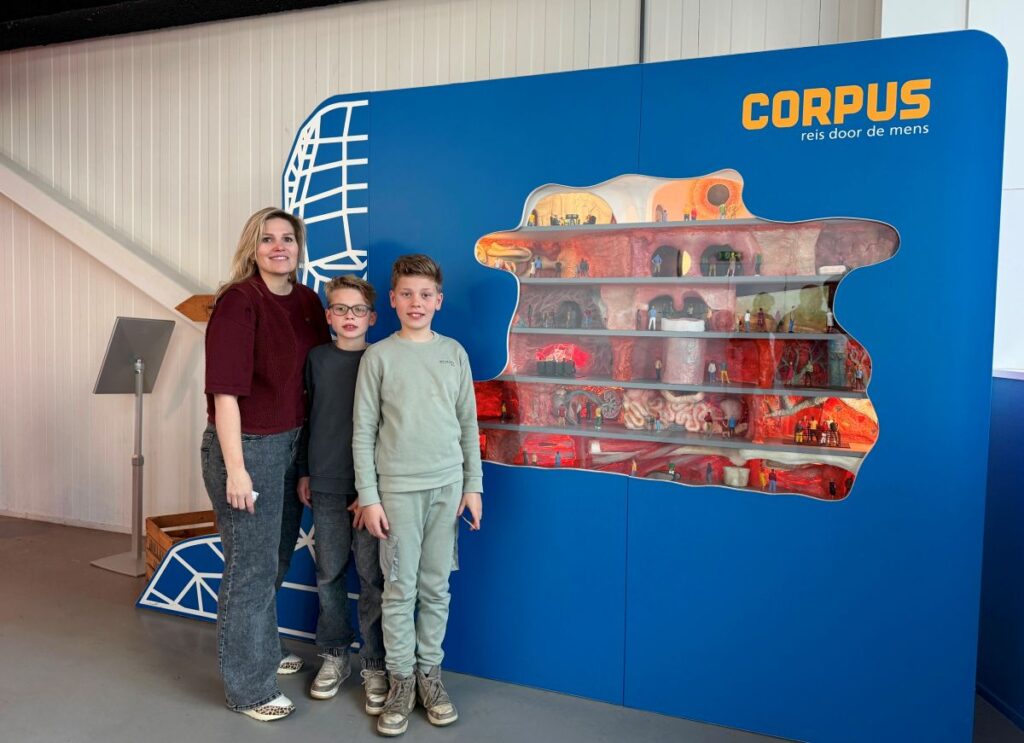Wanneer je bij CORPUS aankomt, kun je er niet omheen: een indrukwekkend mensfiguur torent boven je uit. Je kent het beeld van de reusachtige zittende mensfiguur langs de A44 vast wel. Het is alsof hij je uitnodigt om binnen te stappen en de wonderen van het menselijk lichaam te ontdekken. En dat is precies wat je bij CORPUS kunt doen. Je maakt er een ‘Reis door de Mens’, een interactieve experience die je niet alleen iets leert over het menselijk lichaam, maar die je écht beleeft. In deze blog vertel ik hoe wij deze bijzondere reis als familie hebben ervaren, en waarom dit uitje zo’n succesnummer was bij onze kinderen van 9 en 10 jaar. Ik kan alvast verklappen: het is een avontuur dat je nog lang bijblijft.
