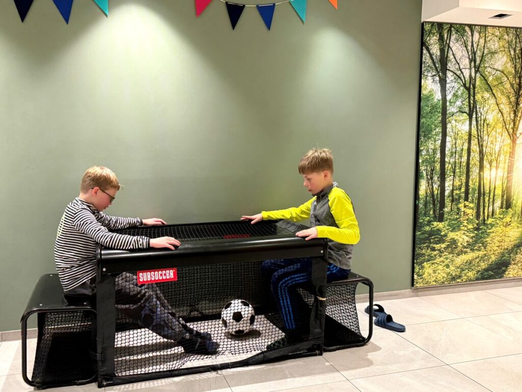 Vanaf het moment dat we aankwamen bij Das Bayrischzell Move & Relax wisten we: hier klopt het gewoon. Dit is zo’n plek waar alles draait om gezinnen zonder dat het geforceerd voelt. Alles is doordacht, ontspannen en vanzelfsprekend afgestemd op ouders én kinderen. Onze jongens hadden binnen no-time hun draai gevonden. Overal zijn speelruimtes waar ze vrij kunnen bewegen, bouwen, ontdekken en vooral zichzelf kunnen zijn. Buiten is er alle ruimte: rennen door het sneeuwlandschap, klimmen, nieuwe vriendjes maken. Het mooie? Wij hoefden ze niet bezig te houden — ze gingen vanzelf op avontuur. En ja, natuurlijk werd er ook fanatiek gegamed op de Playstation van het hotel, wat voor hen minstens zo’n hoogtepunt was.