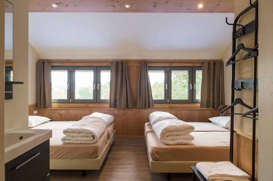 Op de bovenverdieping liggen acht tweepersoonsslaapkamers, twee driepersoonsslaapkamers en één vierpersoonsslaapkamer.