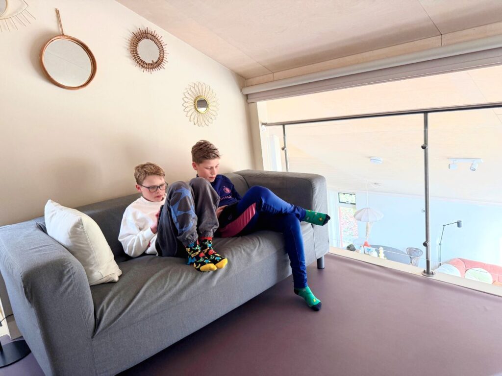 De tuin rondom het huis zorgt voor extra rust en privacy. Bij mooi weer kun je buiten zitten, ontbijten in de ochtend zon of ’s avonds nog even nagenieten van de dag. Voor de jongens was er voldoende ruimte om een balletje te trappen met de ondergaande zon. Om ons verblijf een goede start te geven, waren de bedden al opgemaakt, lagen er handdoeken klaar en stonden er heerlijke verwenproducten van Marie Stella Maris in de badkamer.
