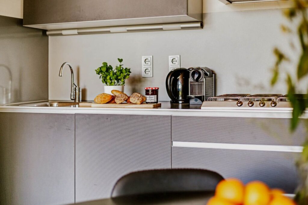 Op de eettafel staat een luxe welkomstpakket voor ons klaar. Het bevat een selectie van lokale of hoogwaardige producten, zoals koffie, thee, iets lekkers. Zo begint ons verblijf bij Dutchen extra ontspannen en hoeven we niet direct boodschappen te doen.