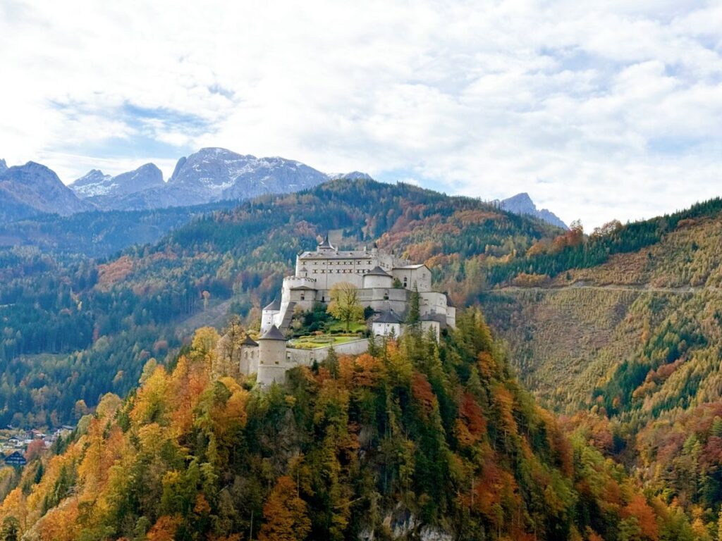 Voor een bezoek aan de Eisriesenwelt raad ik je aan om via de website een tijdslot te reserveren en tickets te bestellen. Zo ben je verzekerd van een plekje op drukke dagen. Vanaf Salzburg is het zo’n 40 minuten rijden naar de ijsgrotten. Het laatste stuk van de route gaat pal langs kasteel Hohenwerfen en via een slingerende weg hoog de bergen in. Dan begint ons avontuur bij het bezoekerscentrum. Vanaf daar wandelen we ongeveer 20 minuten bergopwaarts. Het is een flinke klim, maar goed begaanbaar.