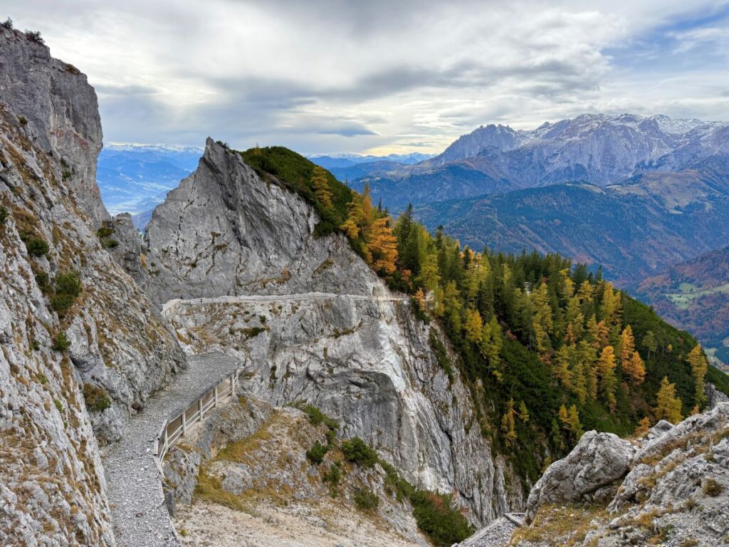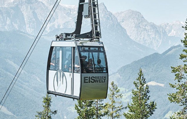 Dan vervolgen we onze weg met een korte rit met de gondel. De gondel vertrekt iedere tien minuten. Het ritje duurt maar een paar minuten maar biedt prachtig uitzicht over het Salzachtal. Daarna volgde nog eenzelfde klim bergopwaarts naar de ingang van de grot.