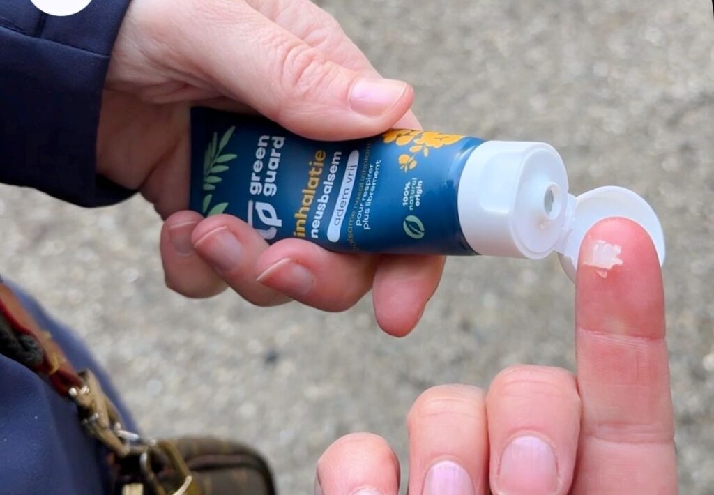 Wat ook goed bij mij past, is de filosofie achter Green Guard. Het merk kiest bewust voor natuurlijke oplossingen voor alledaagse ongemakken. De producten zijn volledig van natuurlijke oorsprong, vrij van minerale oliën zoals petroleum en 100% vegan. Dat voelt voor mij gewoon prettiger wanneer ik iets regelmatig gebruik. Zo zit er in de inhalatie neusbalsem eucalyptus, kamfer en menthol. Dat maakt de balsem zacht, huidvriendelijk en ook geschikt voor kinderen. Een mild product dat ook geschikt is voor mijn jongens vind ik fijn, omdat zij vaak een droge neus hebben of extra ondersteuning kunnen gebruiken om vrijer te ademen. Daarnaast is de balsem compact genoeg om overal mee naartoe te nemen. In mijn tas, jaszak of toilettasje — het neemt bijna geen ruimte in en is daardoor ideaal voor onderweg.
