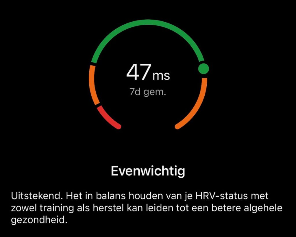 De sensor op mijn Garmin smartwatch meet continu mijn hartslagvariabiliteit, ook in mijn slaap. Dit is de variatie in tijd tussen opeenvolgende hartslagen (in milliseconden). Je hart slaat niet steeds exact hetzelfde ritme en variatie vertelt veel over hoe jouw lichaam reageert op stress, rust of herstel van trainingen. In combinatie met de metingen van mijn slaap, beweging en Body Battery krijg ik een compleet beeld van mijn conditie. Dat werkt voor mij vooral motiverend. Zo weet ik nu dat nachtrust van enorme invloed is.