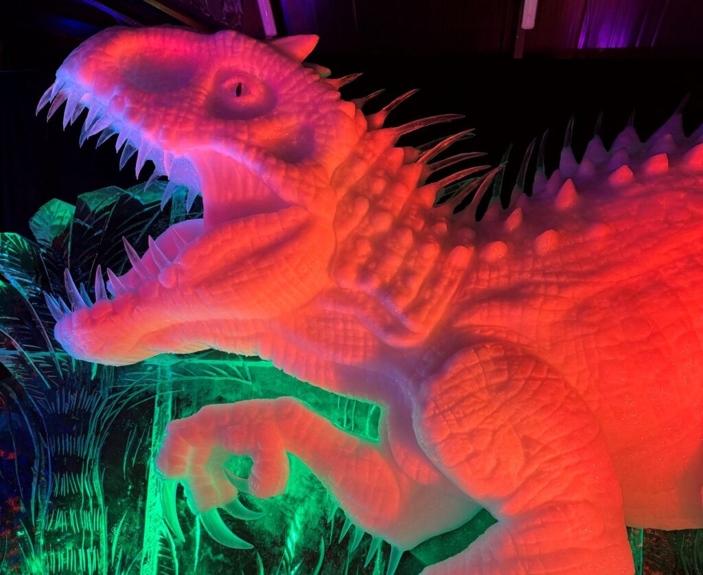 Mijn jongens renden al gauw enthousiast van beeld naar beeld, terwijl ikzelf steeds even bleef stilstaan om het vakmanschap te bewonderen. Het is bijna niet te bevatten dat deze beelden allemaal uit ijs zijn gemaakt. Het detailwerk van de beelden is ongelofelijk. Ik dacht dat het vooral gladde oppervlakten en simpele vormen zouden zijn, maar het is het tegenovergestelde. Zo zijn onder andere het structuur van het haar, de plooien op kleding, de tanden van angstaanjagende dinosaurussen in het ijs bewerkt. Heb je wel eens op een stoel van ijs gezeten? Sommige beelden hebben speciale spots waar jij de foto compleet maakt. “Mam, kom eens… er is daar iets heel grappigs.” Vervolgens stond mijn zoon tussen de Minions. “En mam, dit is echt iets voor jou.” Natuurlijk ging ik met Barbie op de foto.