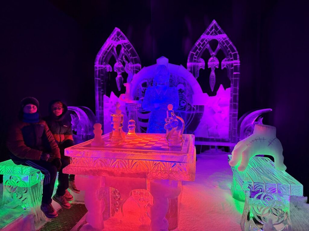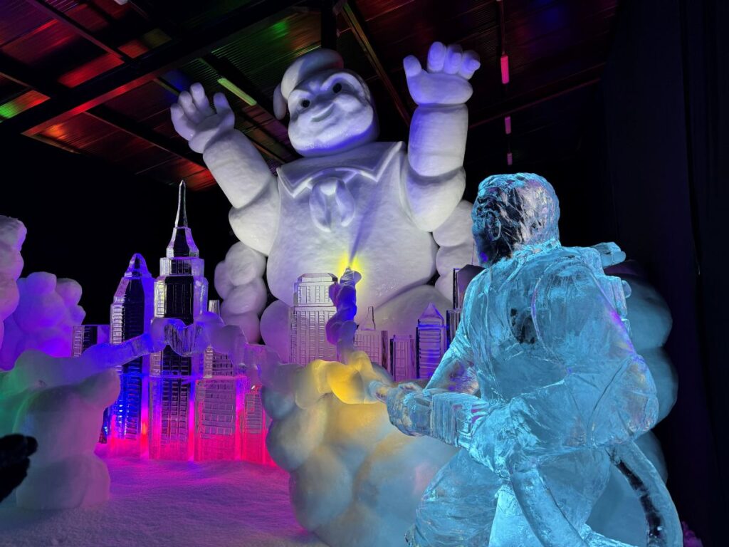 Zodra je de ijshal ingaat, voelt het alsof je een andere wereld binnenstapt. Onze adem maakte wolkjes van de kou. Gelukkig waren we hier goed op voorbereid met warme jassen, mutsen en handschoenen. Niet eerder zag ik zulke enorme ijsfiguren die boven mij uit torenden. Naast me zag ik verwonderde koppies van mijn jongens. “Is dat echt ijs? Hoe maken ze dat?” Het leek wel alsof we een filmset opliepen, maar dat is misschien ook wel de bedoeling. Het thema van het IJsbeelden Festival is dit jaar “Let’s go to the movies: IJsbeelden van het witte doek.” De ijsbeelden staan dan ook volledig in het teken van iconische films, zoals de Titanic, Alice in Wonderland, Indiana Jones en Minecraft.