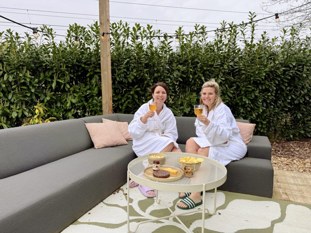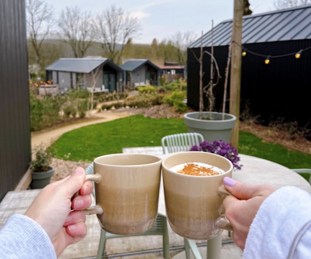 Het voelt als een fijne plek, midden in het groene Limburgse landschap, om rustig wakker te worden en uitgebreid bij te kletsen. Over van alles en nog wat, precies zoals dat gaat als je eindelijk weer eens echt de tijd hebt voor elkaar. We genoten van het zonnetje op onze eigen veranda. Even later stapten we naar de hottub. Het is heerlijk om in het warme water te ploffen, ik voelde de spanning uit mijn spieren verdwijnen. ’s Avonds aten we mediterraans bij restaurant La Casa, dé plek in Valkenburg voor gezellig tafelen en ontspannen genieten in een sfeervolle setting.