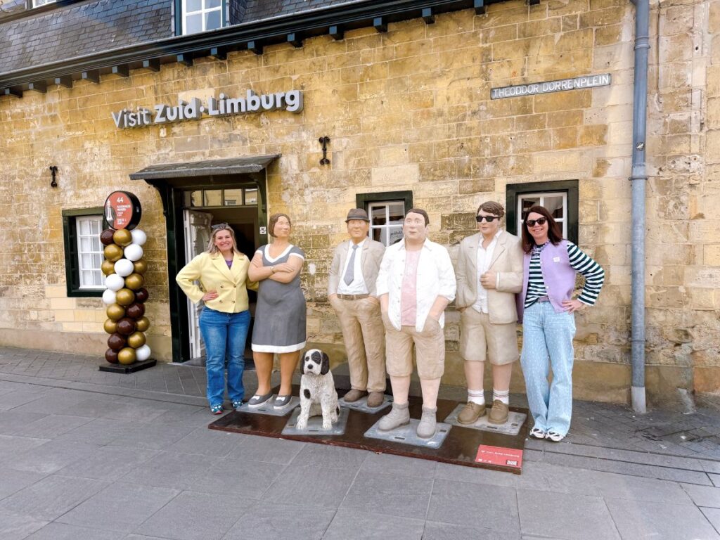 Daarna halen we bij de Visit Zuid-Limburg Experience een plattegrond op voor een rondje langs de Alledaagse Mensen. Dit zijn levensgrote betonnen beelden van het kunstenaarsduo Christel en Laura Lechner. De beelden vertellen allemaal een ander verhaal en laten je stilstaan bij de schoonheid van de dagelijkse dingen, zoals de laatste nieuwtjes bij de kapper of een feestje in het park. De Alledaagse Mensen zijn te bekijken tot en met 8 juni 2026.