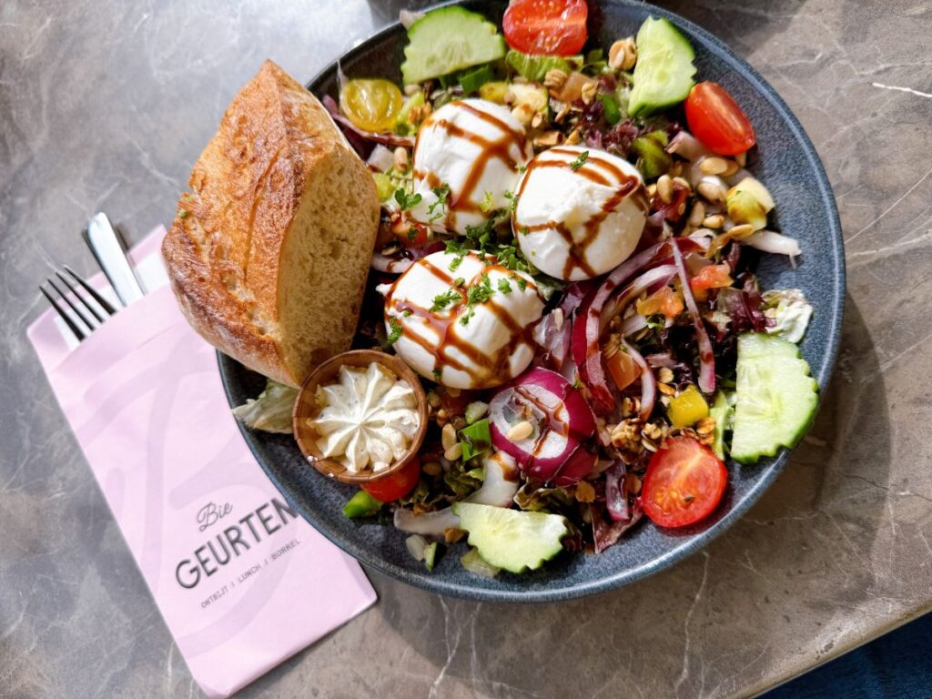 We streken neer op het terras van de gezellige en populaire lunchroom Bie Geurten. Buiten op het terras zit je perfect om het bruisende plein te bekijken. De menukaart is gevarieerd en laagdrempelig. ‘Ik lust alles op de menukaart’, aldus mijn vriendin. Volop diverse belegde broodjes, sandwiches en warme lunchgerechten, vaak bereid met producten uit de eigen bakkerij.