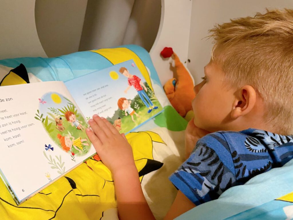 De AVI- leesboeken Zin om te lezen sluiten hier goed bij aan. De boekjes bevatten korte zinnen, makkelijke woorden en kleurrijke illustraties. De verhaaltjes zijn door mijn zoon zelfstandig te lezen, spreken tot de verbeelding en sluiten aan bij de verbeeldingswereld van mijn kind. De korte verhaaltjes zijn perfect voor het slapen gaan. Door even samen te lezen, merk ik dat mijn zoon ontspant en rustiger is om te slapen. Het is ook gezellig en fijn om even één op één tijd te hebben.